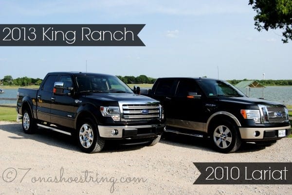 Driving around in a pick-up truck has always been exhilarating for me. My dad has forever owned a truck and as a teenager I would beg to drive them. There is just something about driving a truck that is way too much fun... especially here in Texas. In fact, currently my dad owns a 2010 Ford F-150 Lariat, so we put it up beside the 2013 Ford F-150 King Ranch® just to show them both off.