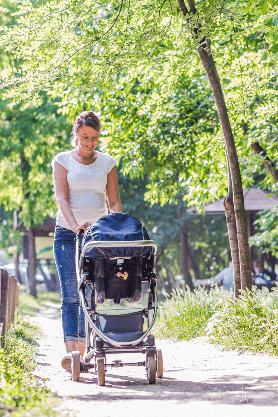 A simple walk around the block can be a great way to get fresh air and bond with your baby. If you have other young children, you can buy cool scooters for them so, they can ride along with you.