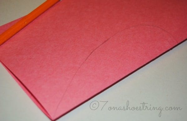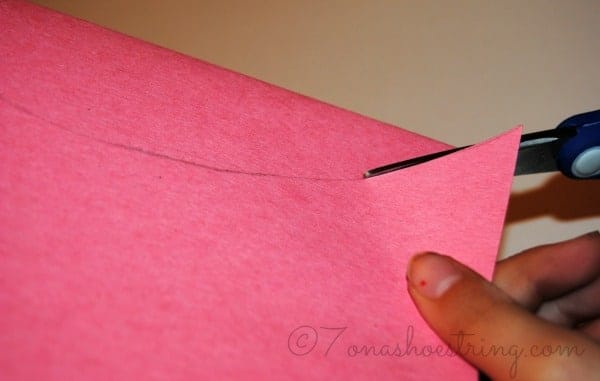 - Fold construction paper in half. Along the fold draw half of a heart shape about 4 inches long.
