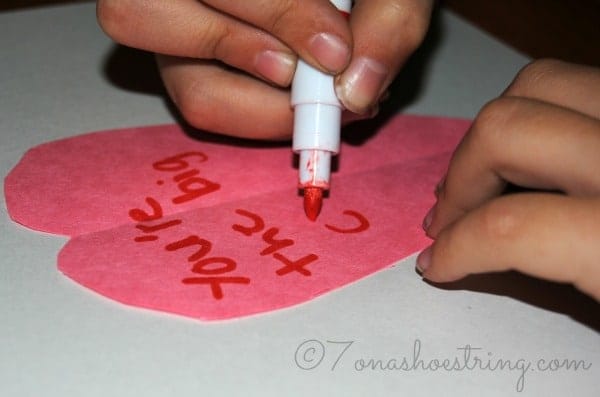 Once we figured out how to do the first one it took about 7 minutes to do the next ones. The longest part of the process was when Jaci would write her Valentine’s Day message inside the cards.